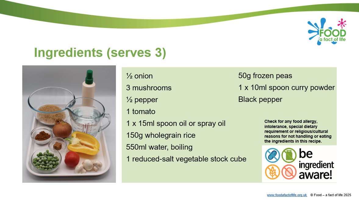 • Links to further resources and activities connected to the recipe or practical food skills used