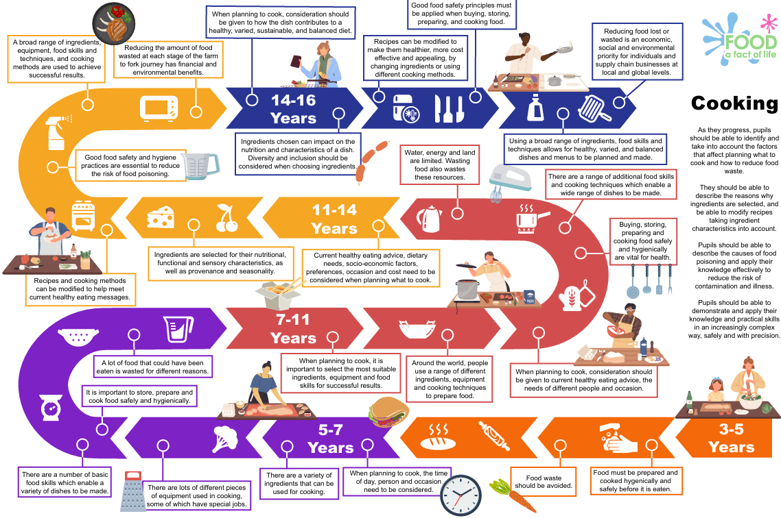 - support practical learning, as visual guides can showcase good practice and techniques for cooking skills, this can develop independence in your classrooms;