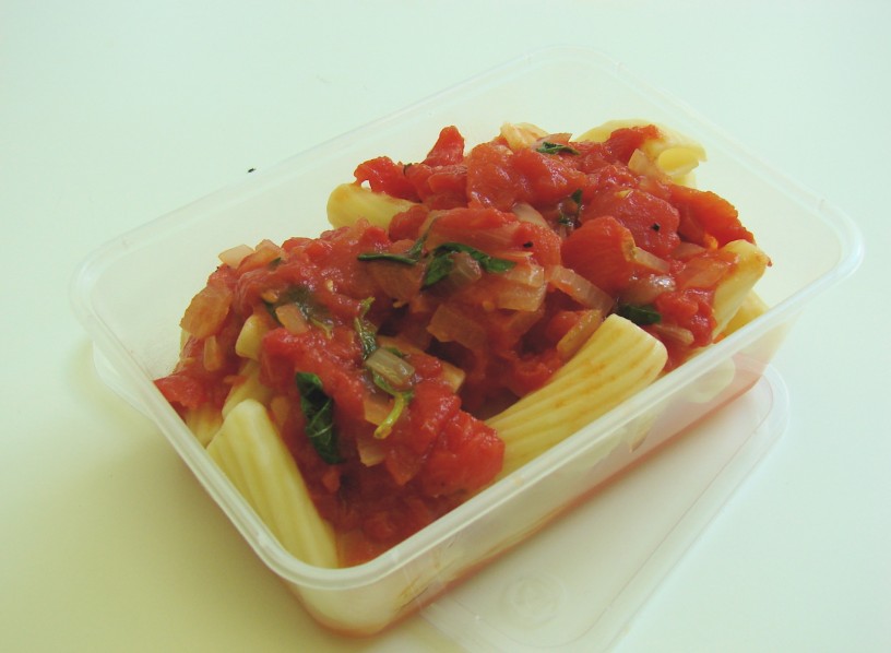 - mix the cooked pasta and tomato sauce together.