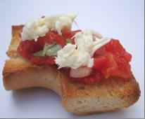 - Tear small pieces of mozzarella and add to the top of each piece of bagel.