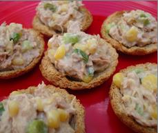- Spoon the tuna mixture equally into each bread ‘tart’.