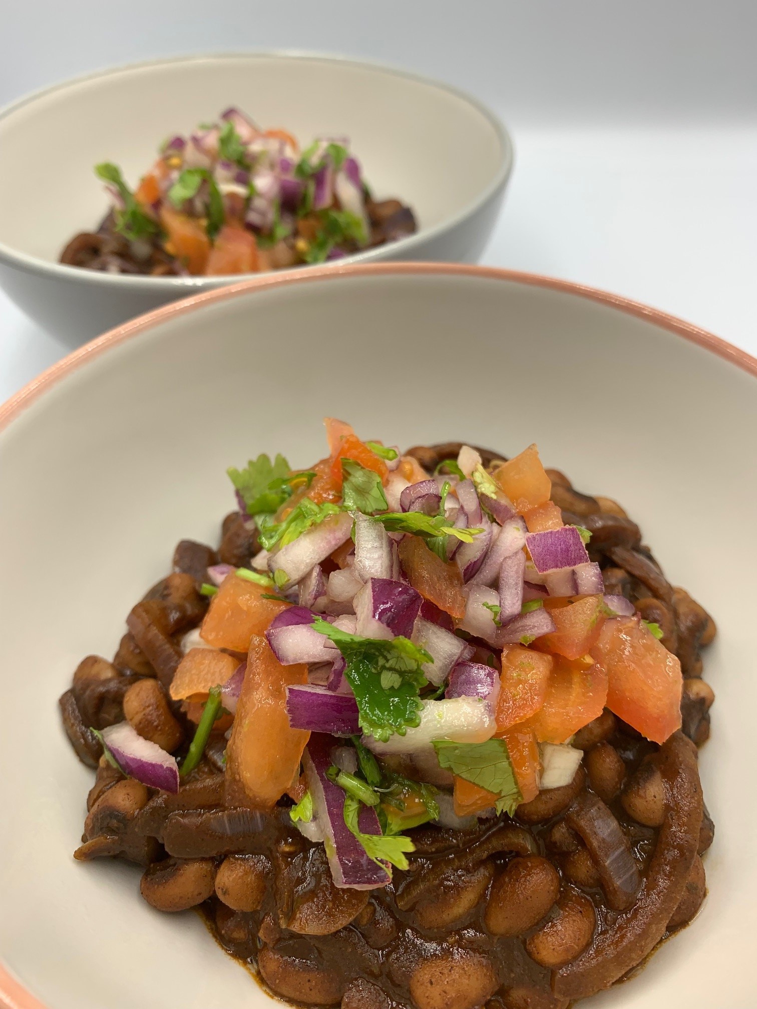 - mix all the ingredients together in a small bowl. - Spoon the mole into bowls and top with the salsa.