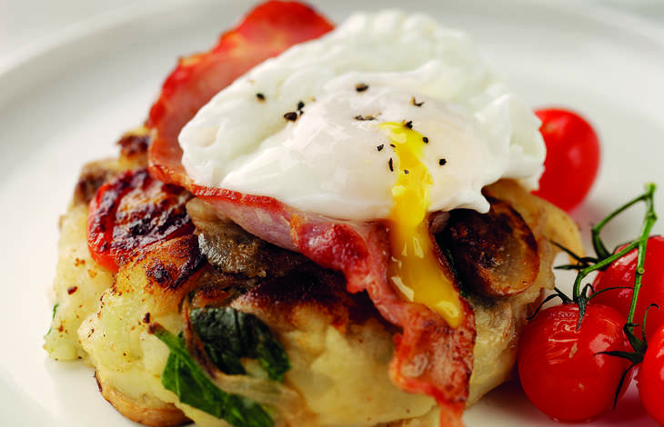 Ideal for using up leftover cooked potatoes. Sausages could also be added to this breakfast brunch.