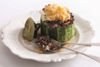 10. Place the marrow rings onto a baking tray and fill with the meat sauce.